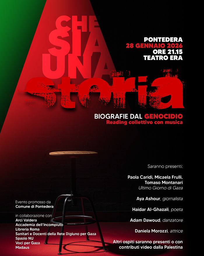 L'appuntamento, con un evento aperto a tutti, è per mercoledì 28 gennaio alle ore 21,15 al Teatro Era di Pontedera. "Con l’intento - spiega la vicesindaca di Pontedera Carla Cocilova - di restituire nomi, voci e biografie a ciò che troppo spesso viene ridotto a numeri o oscurato dal silenzio mediatico. Raccontare le storie non è un esercizio di memoria fine a sé stesso, ma un atto di responsabilità e un passaggio necessario verso la giustizia."