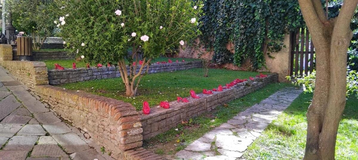 Un coro silenzioso di scarpe rosse, modellate in argilla e smaltate con cura, diventa a Vicopisano un monumento contro la violenza sulle donne.