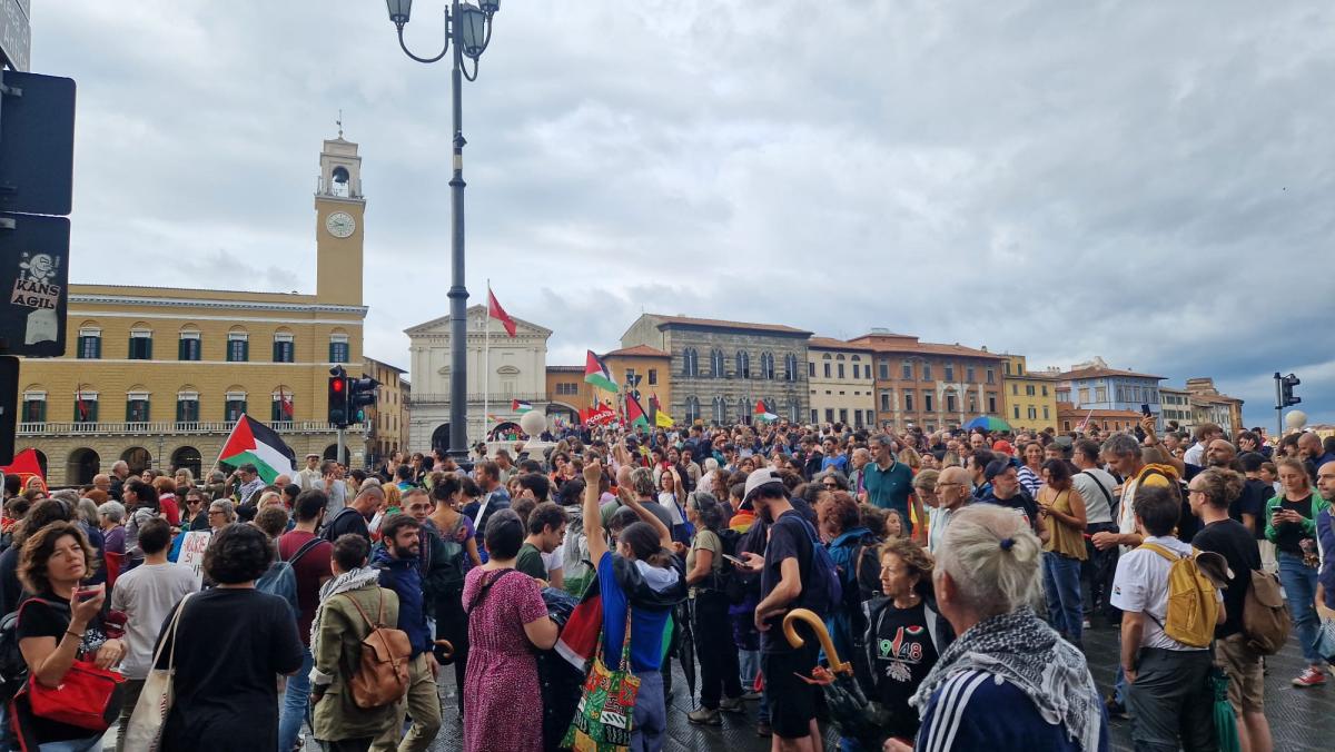 Oggi a Pisa una marea infinita di persone ha desertato dai posti di lavoro, dalle scuole e dalle università in solidarietà al popolo Palestinese e al suo popolo, contro le complicità che il nostro governo, le opposizioni e i sindacati complici continuano ad intrattenere con Israele.