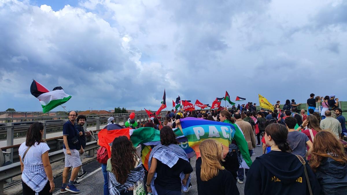 Un corteo immenso di più di 15 mila persone, in occasione dello sciopero generale e generalizzato indetto da Usb e a cui ha aderito anche il sindacalismo di base, ha attraversato oggi tutta la città fino ad invadere e bloccare la superstrada. L’obiettivo di bloccare le città e le infrastrutture di trasporto è riuscito grazie ad una partecipazione e una determinazione straordinaria per raggiungere un obiettivo: fermare il genocidio del popolo palestinese da parte di Israele, denunciare le complicità del Governo Meloni chiedendo di interrompere ogni rapporto militare e commerciale, sostenere e difendere la Global Sumud Flotilla che naviga verso Gaza.