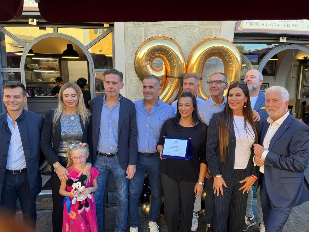 Alla consegna della targa celebrativa, presso il locale in Largo Parlascio n.26 a Pisa, presenti il presidente e il direttore generale di Confcommercio Provincia di Pisa Stefano Maestri Accesi e Federico Pieragnoli, con la presidente Confcommercio Pisa Centro Francesca Bufalini, il sindaco e l'assessore al Commercio del Comune di Pisa Michele Conti e Paolo Pesciatini e l'onorevole Edoardo Ziello.