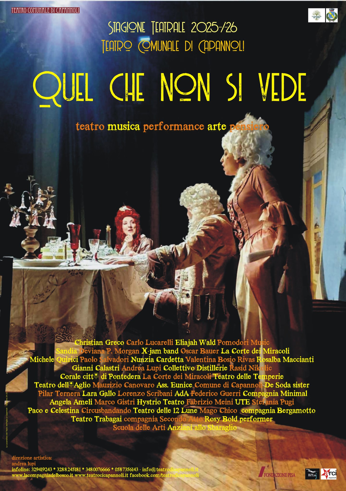 Come da diversi anni a questa parte il Teatro Comunale di Capannoli, dietro l'attenta gestione della Compagnia del Bosco e la direzione artistica di Andrea Lupi, si distingue come uno dei più interessanti e dinamici tra i numerosi piccoli teatri della Toscana. Ben 30 gli appuntamenti tra teatro, musica, mostre d'arte e incontri con personaggi del mondo della Cultura con il preciso intento di aprire una visuale non solo sul panorama artistico e culturale toscano ma andando a ricercare alcuni temi cari alla direzione artistica (società, disuguaglianze, minoranze, impegno civile, libero pensiero, avanguardie) anche al di là del proprio territorio con artisti italiani e anche stranieri. Quest'anno artisti da Stati Uniti, Spagna, Nicaragua, Israele e da uno dei popoli senza nazione, i Rom.
