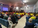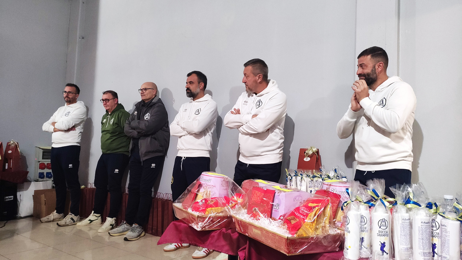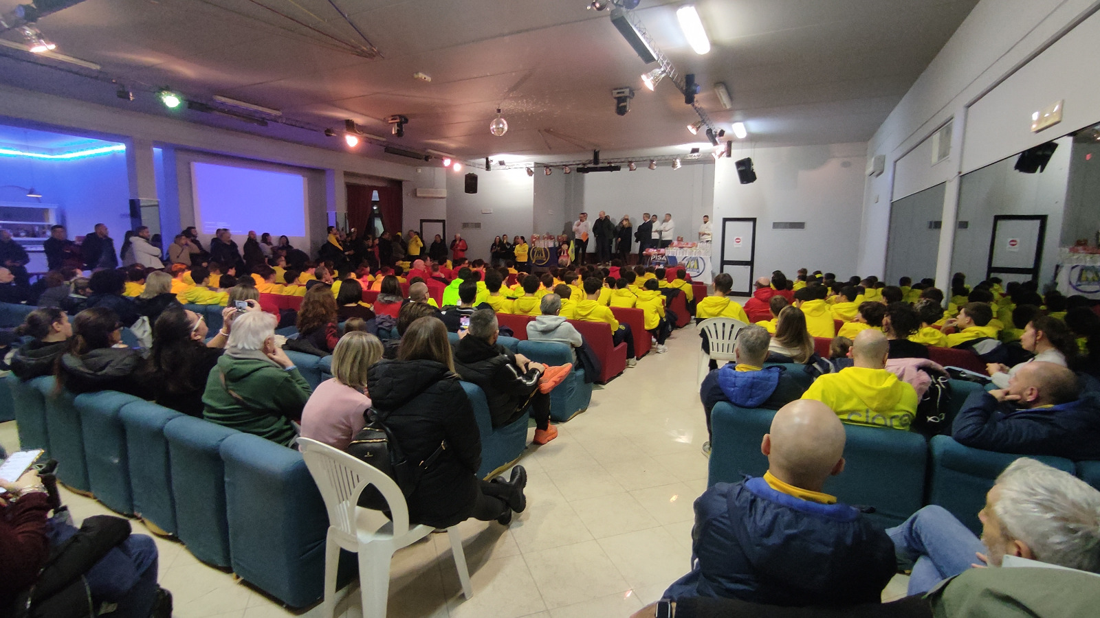 La presenza è stata particolarmente significativa: le diverse categorie si sono presentate al completo, riempiendo la sala con i colori sociali. Dalle felpe gialle degli atleti a quelle rosse degli allenatori, fino alle divise azzurre della squadra Over e ai colori bianco-verdi della dirigenza.