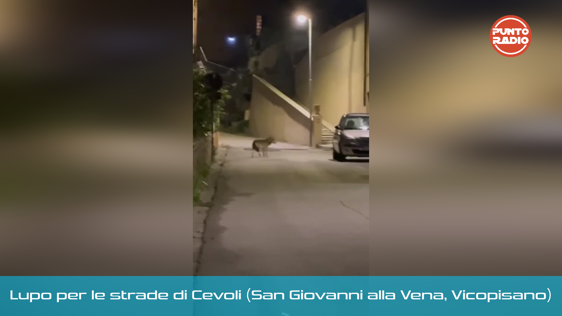 La sera di sabato 10 gennaio, tra le strade di Cevoli, località di San Giovanni alla Vena molto abitata, mentre era a bordo di un'auto, l'incontro con un lupo, solitario, bellissimo e inquietante allo stesso tempo.