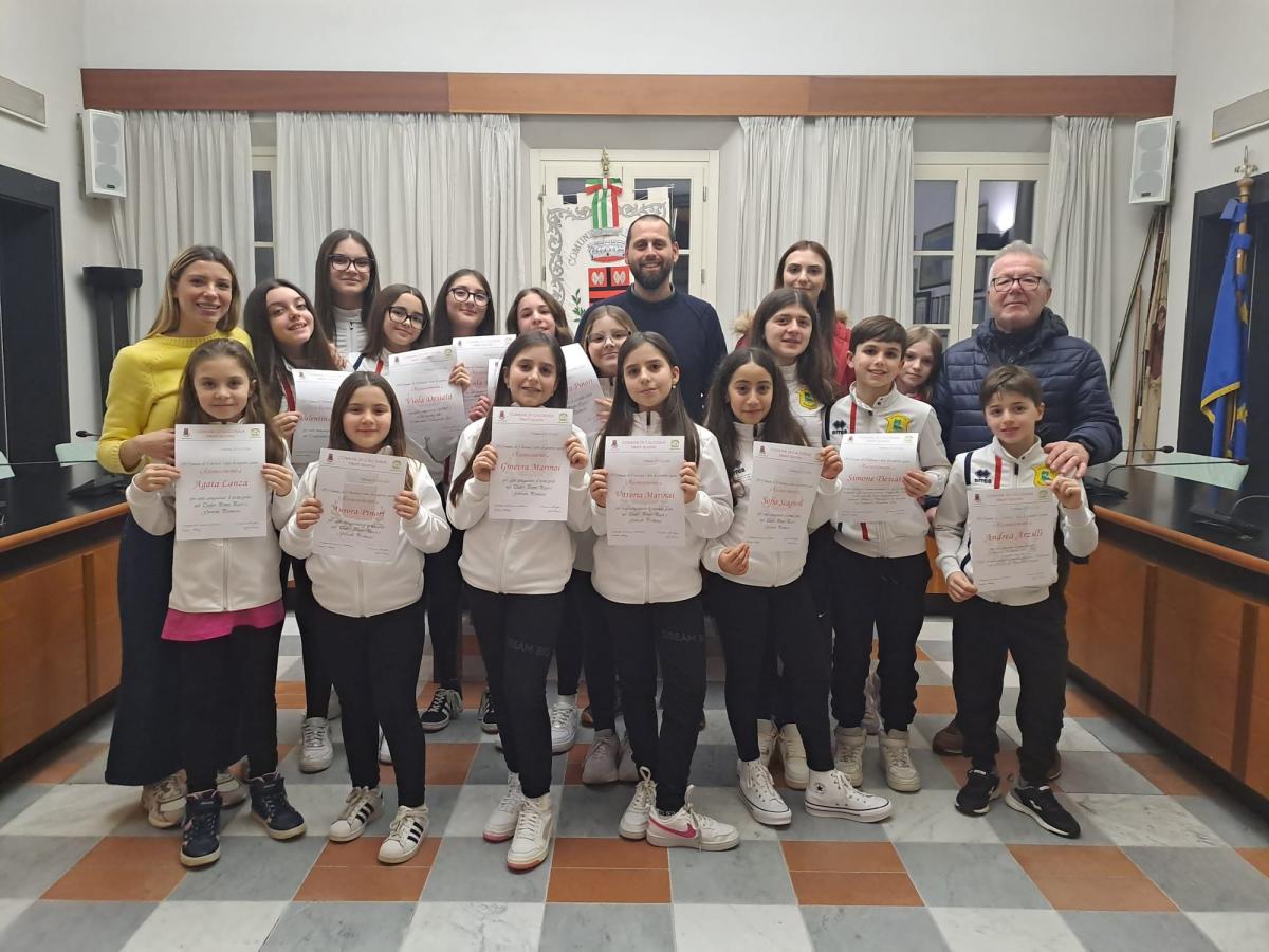 L'Assessore allo sport Doveri consegna in Sala Consiliare gli attestati al merito sportivo alle atlete e agli atleti della Polisportiva che hanno conquistato medaglie nazionali e internazionali