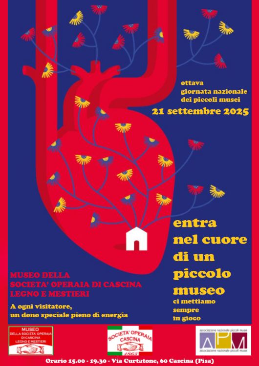Anche il -Museo della Società Operaia di Cascina, Legno e Mestieri- parteciperà all’iniziativa, aprendo gratuitamente al pubblico dalle ore 15.00 alle 19.30, nei locali di via Curtatone 60 a Cascina (PI). Un’occasione speciale per scoprire o riscoprire un luogo che racconta la storia del lavoro, dell’artigianato, dell’istruzione e del mutualismo che hanno segnato profondamente la vita sociale e produttiva del territorio.