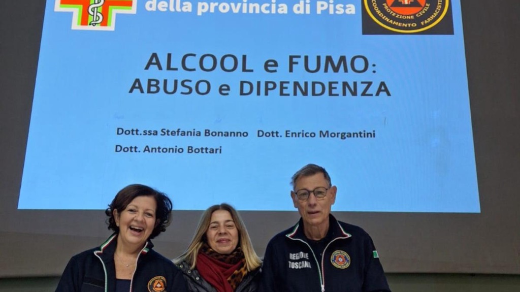 L’iniziativa, realizzata in collaborazione con l’Ordine dei Farmacisti della provincia di Pisa, ha visto l’intervento del presidente Enrico Morgantini, affiancato dalla dottoressa Stefania Bonanno e dal dottor Antonio Bottari. Durante l’incontro sono stati affrontati i rischi legati all’uso di alcool, tabacco, sigarette elettroniche e cannabis, con particolare attenzione alla facilità con cui possono svilupparsi forme di dipendenza in età adolescenziale.