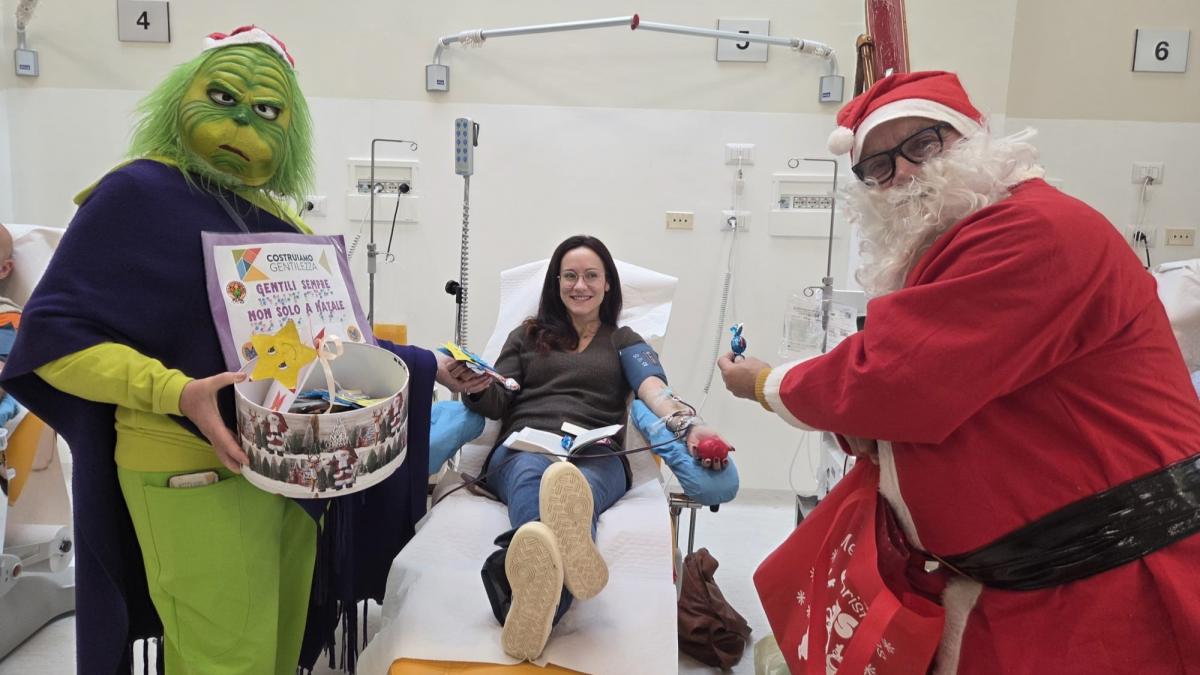 Sono stati tanti, ben 147, i donatori che non hanno dimenticato di dare il loro contributo al Centro trasfusionale dell’Aoup durante le festività natalizie, grazie anche alla presenza dei testimonial, in modo da supportare le riserve che servono all’ospedale per effettuare trapianti, interventi chirurgici, terapie salvavita.Questi gli eventi di richiamo: il 14 dicembre scorso apertura domenicale straordinaria con l’associazione culturale calabrese "Esperia" insieme ai Maghi prestigiatori; il 20 dicembre visita di Babbo Natale; il 21 dicembre apertura domenicale straordinaria con i componenti del Gioco del Ponte parte di Mezzogiorno; il 23 dicembre di nuovo Babbo Natale e il Grinch della gentilezza; infine il 3 gennaio visita della Befana.  Un grazie sentito a tutti i donatori e a chi ha fatto da testimonial per attirare famiglie e bambini. Questa la raccolta nel dettaglio: 79 donazioni di sangue intero, 38 di emocomponenti, 30 donazioni differite.