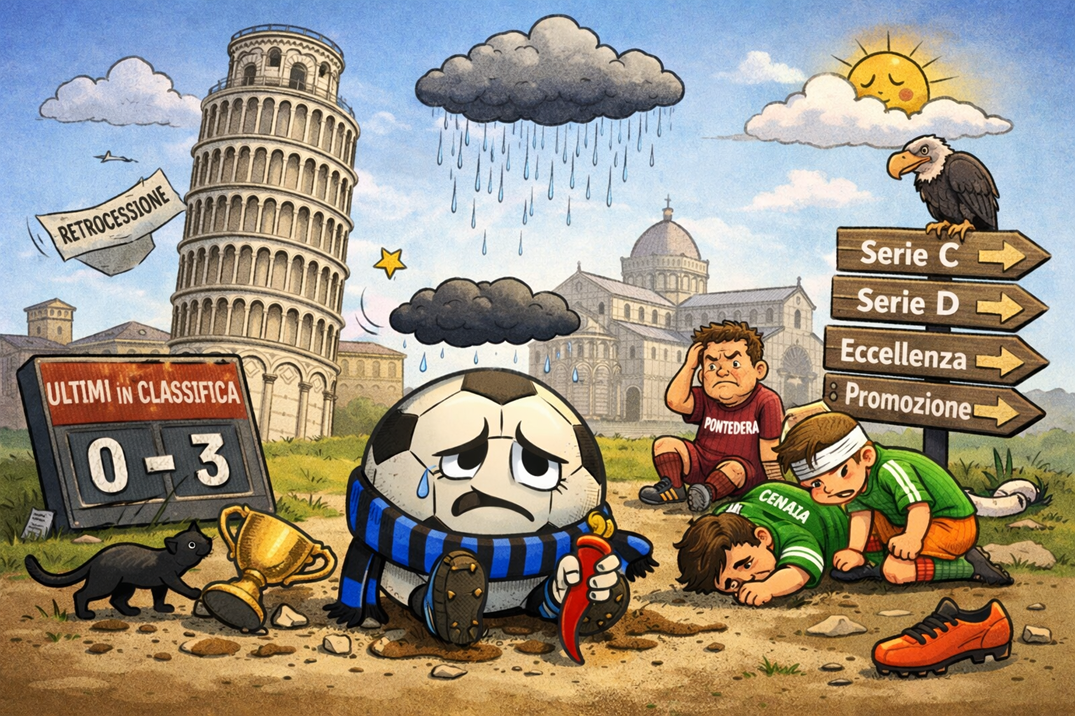 Il 2025 (sportivamente parlando) rischia di entrare negli annali come l’“anno horribilis” del calcio pisano. Perché se è vero che il pallone rotola, è altrettanto vero che, in quasi tutte le categorie, le squadre della provincia sembrano aver deciso di presidiare con convinzione l’ultima casella.