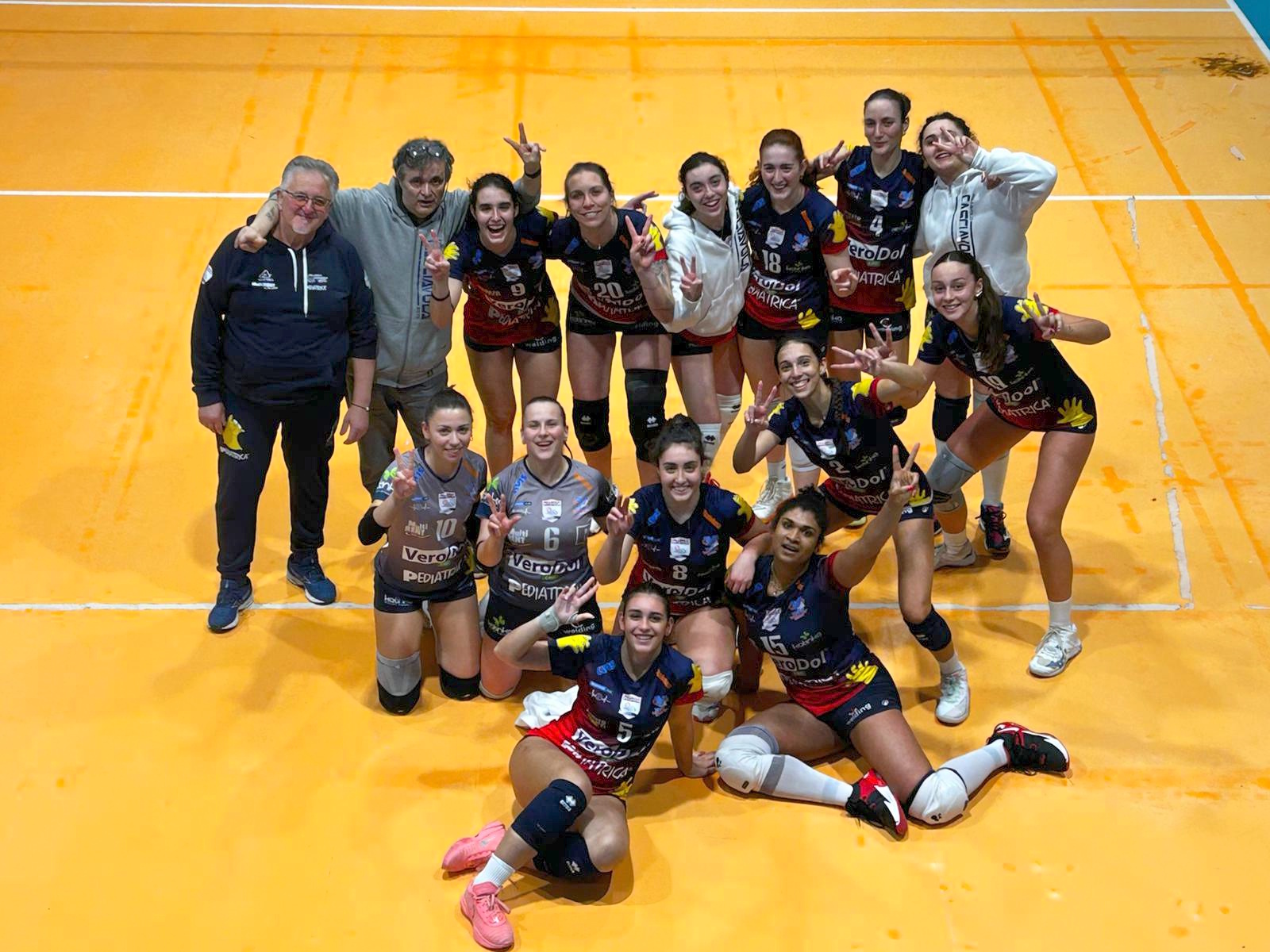 Nel quinto set Baldacci sceglie Monchi in regia, Interlandi opposta e poi ben quattro giovani classe 2006: Bolognini e Pelloso al centro; Caponi e Corsini schiacciatrici, con Cenghiaro libero. La linea verde risponde presente, così la Verodol allunga subito, doppia le avversarie al cambio campo (8/4) e poi gestisce fino al 15/11 finale che regale due punti che permettono alla Verodol di accorciare sulla zona playoff e restare così in corsa per gli spareggi promozione.