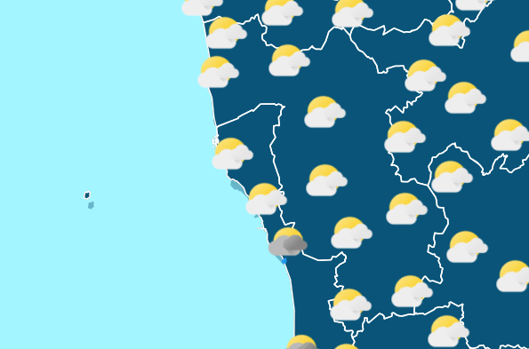 Poco nuvoloso o parzialmente nuvoloso con maggiori addensamenti sulla costa e sul centro-sud della regione.