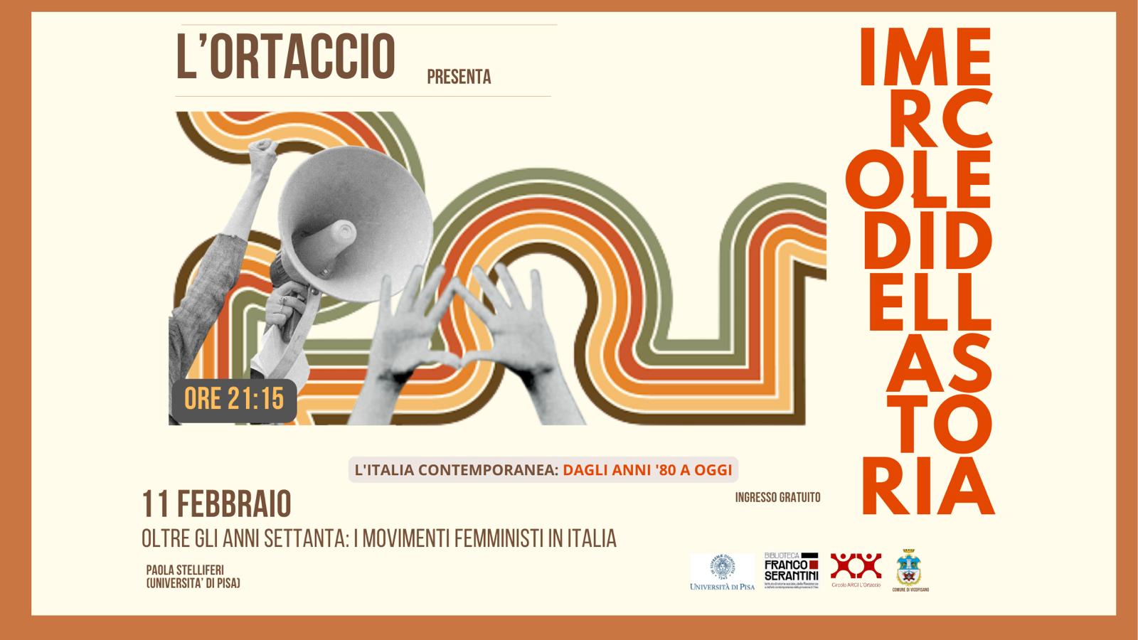 L’11 febbraio alle 21.15, al Circolo Arci L’Ortaccio di Vicopisano (via Loris Baroni 14), Paola Stelliferi, (Università di Pisa) parlerà dei movimenti femministi in Italia dagli anni’80 a oggi.