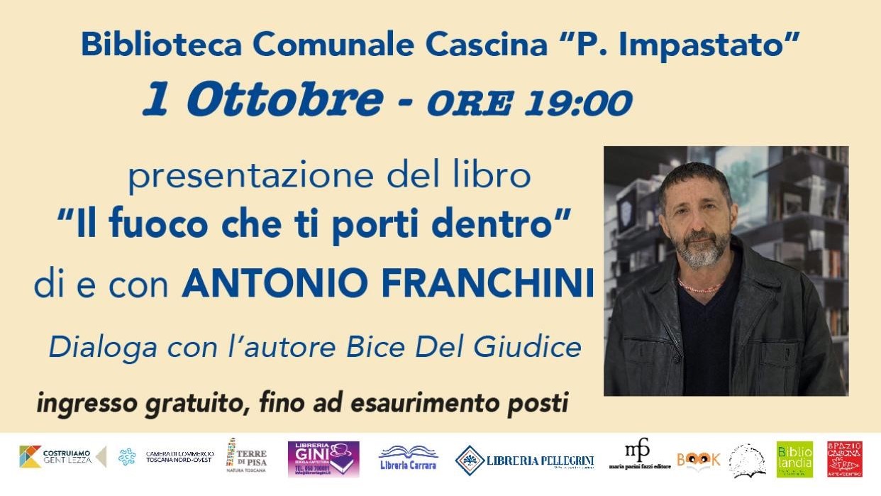 Mercoledì primo ottobre (ore 19, Gipsoteca della Biblioteca comunale “P.Impastato”) nuovo appuntamento della rassegna “Libri lungo le Mura. Festival della Lettura città di Cascina” con lo scrittore Antonio Franchini, per la presentazione del libro “Il fuoco che ti porti dentro”.