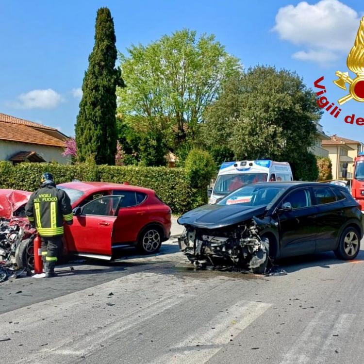 Scontro frontale a Ponsacco, due feriti gravi: danneggiata anche una colonnina del gas