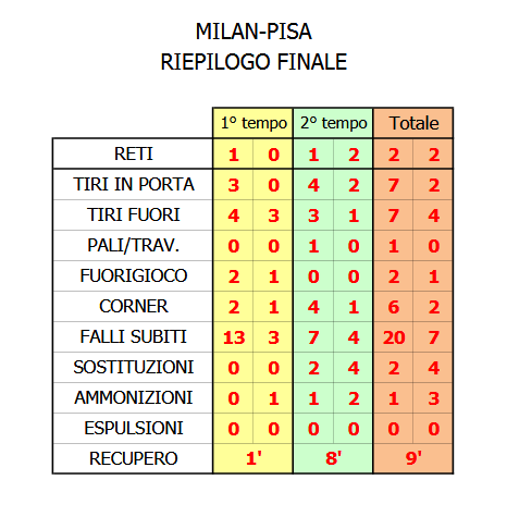MILAN-PISA SPORTING CLUB: 2-2 (ottava giornata serie A)