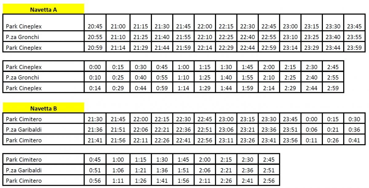 Saranno in funzione dalle 20:45 fino alle 3 del mattino
