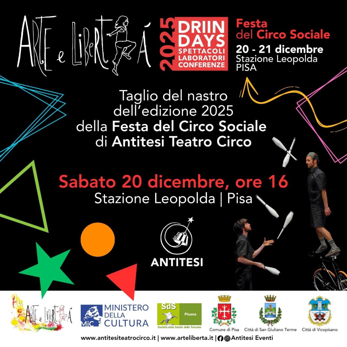 Spettacoli di circo contemporaneo, laboratori di circo-teatro e circo-scienza, talk e ospiti di rilievo nazionale, proiezioni di film e musica live. Il 20 e 21 dicembre la Stazione Leopolda di Pisa ospita la quarta edizione dei Driin days - Arte e libertà, una due giorni dedicata al circo sociale come strumento multidisciplinare di inclusione, un circo senza animali e innovativo per le connessioni artistiche con la danza, la musica, il teatro e la scienza.