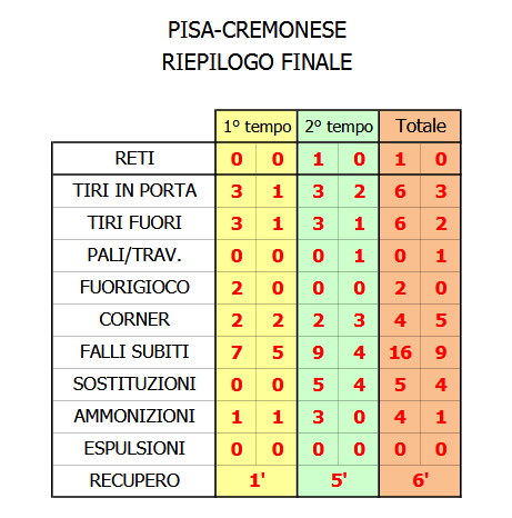 PISA SPORTING CLUB- CREMONESE: 1-0 (undicesima giornata serie A)