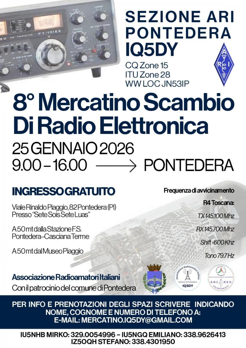 Un appuntamento ormai fisso della fine del mese di gennaio, arrivato alla ottava edizione. È il mercatino di scambio radio ed elettronica, organizzato dalla sezione pontederese dell'Ari ( associazione radioamatori ).
