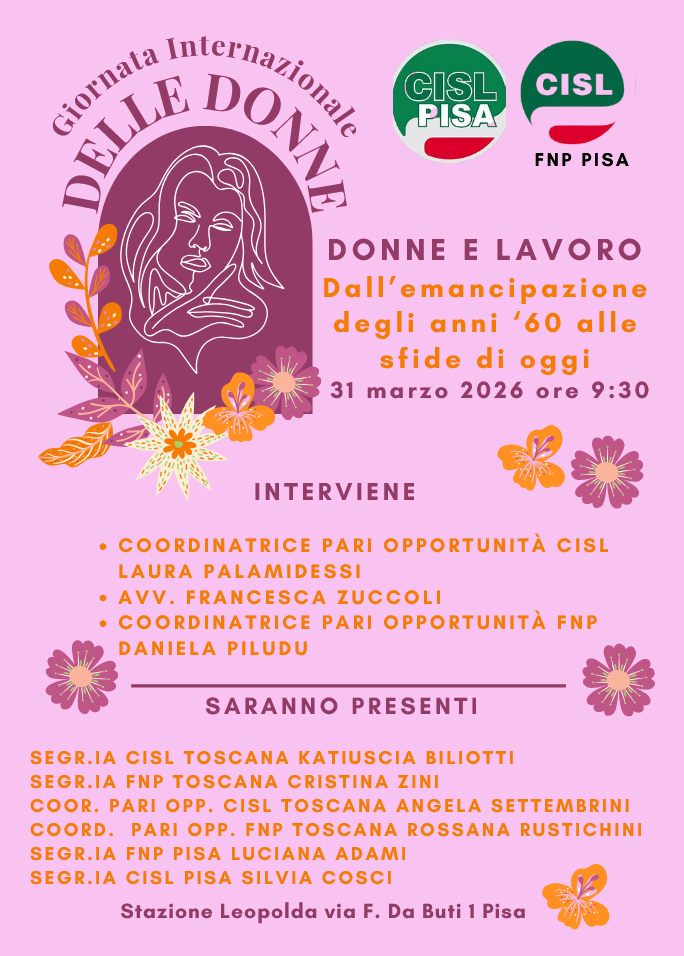 Lunedì 23 marzo torna l'appuntamento in compagnia di Cisl Pisa.