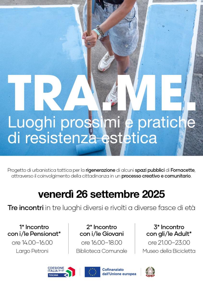 Prosegue il percorso di TRA.ME. – Luoghi prossimi e pratiche di resistenza estetica, promosso dal Comune di Calcinaia e realizzato con il co-finanziamento della Regione Toscana nell’ambito del Programma Regionale FSE+ 2021–2027 “Inclusione e presidio sociale per promuovere la partecipazione attiva dei cittadini e garantire maggiori condizioni di sicurezza”.