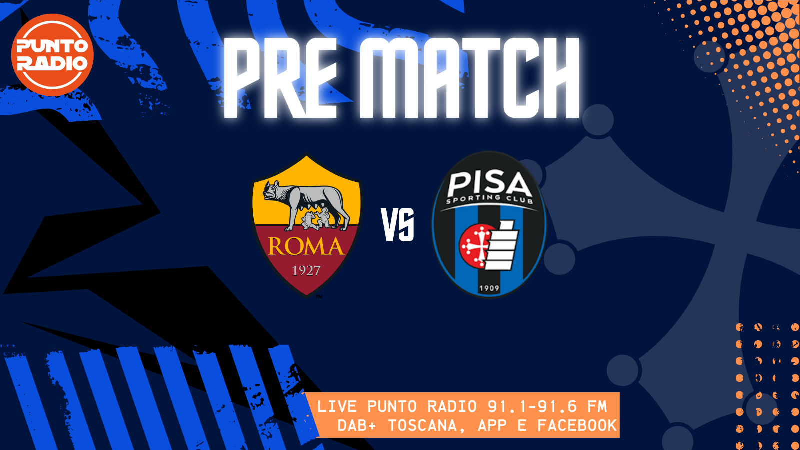 Per seguire la partita appuntamento dalle 12:15 su Punto Radio 91.1-91.6 FM, in DAB+ Toscana oppure attraverso la app gratuita (scarica gratis a questi link: App Store (dispositivi Apple) o Google Play (dispositivi Android)) e tramite la pagina facebook PuntoRadioFM.