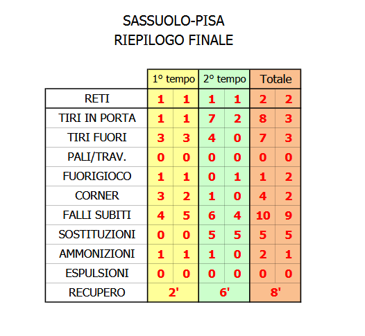 SASSUOLO-PISA SPORTING CLUB: 2-2 (dodicesima giornata serie A)
