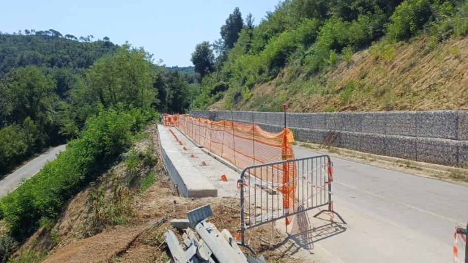 "Adesso sono in corso gli interventi e la ditta sta lavorando sulla scarpata interna al tornante, con il posizionamento delle reti e la geostuoia", fanno sapere dalla Provincia di Pisa.