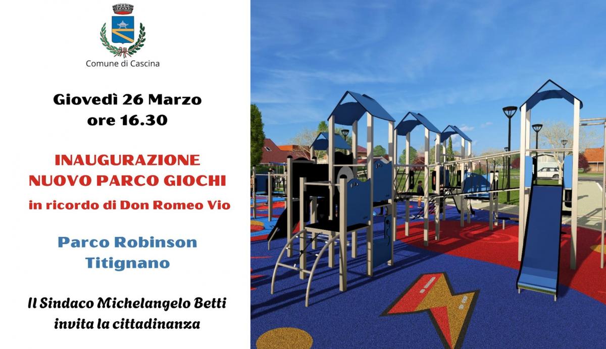Sarà inaugurato giovedì 26 marzo a Titignano il rinnovato Parco Robinson, oggetto di un intervento di riqualificazione promosso dal Comune di Cascina.