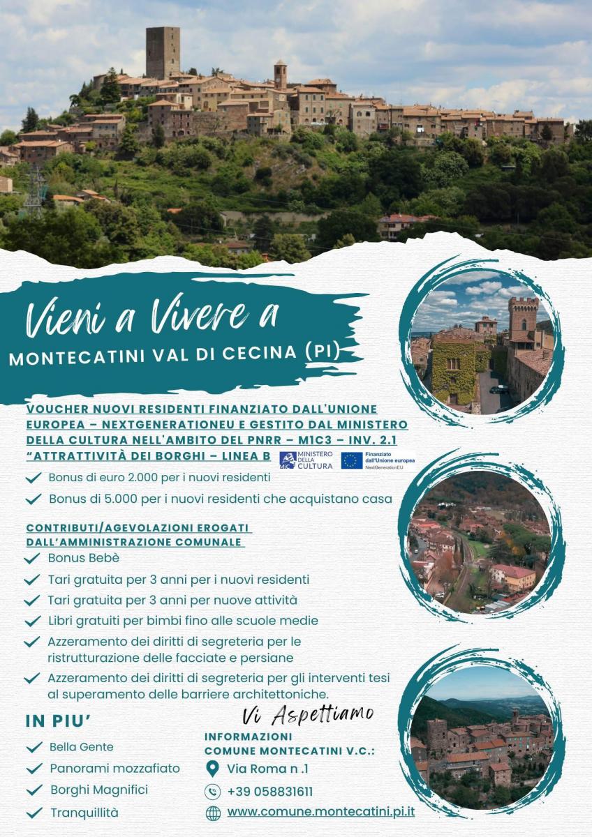 Vieni a vivere a Montecatini Val di Cecina: incentivi per residenti e nuove attività, voucher Pnrr in scadenza