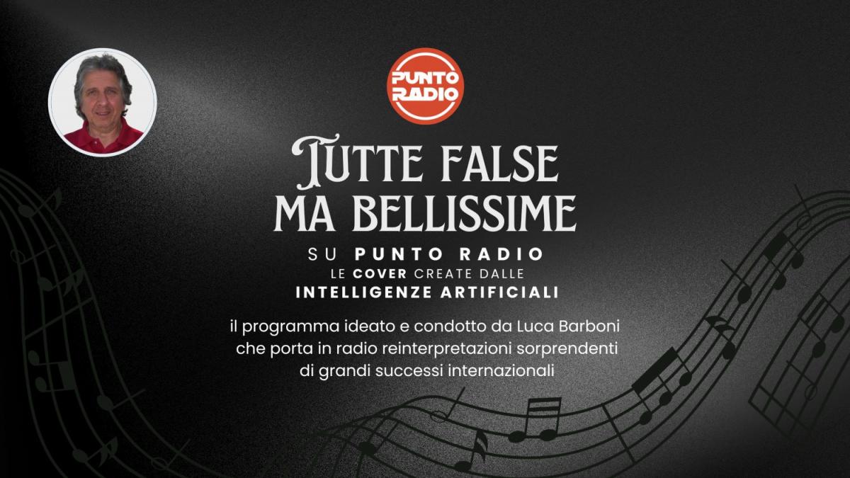 Da venerdì 28 novembre su Punto Radio debutta una nuova trasmissione che unisce curiosità musicale e sperimentazione tecnologica: “Tutte false, ma bellissime”, un format ideato e condotto da Luca Barboni (nella foto), che porta in onda - per la prima volta - tre cover di celebri brani internazionali interamente create dalle Intelligenze Artificiali.