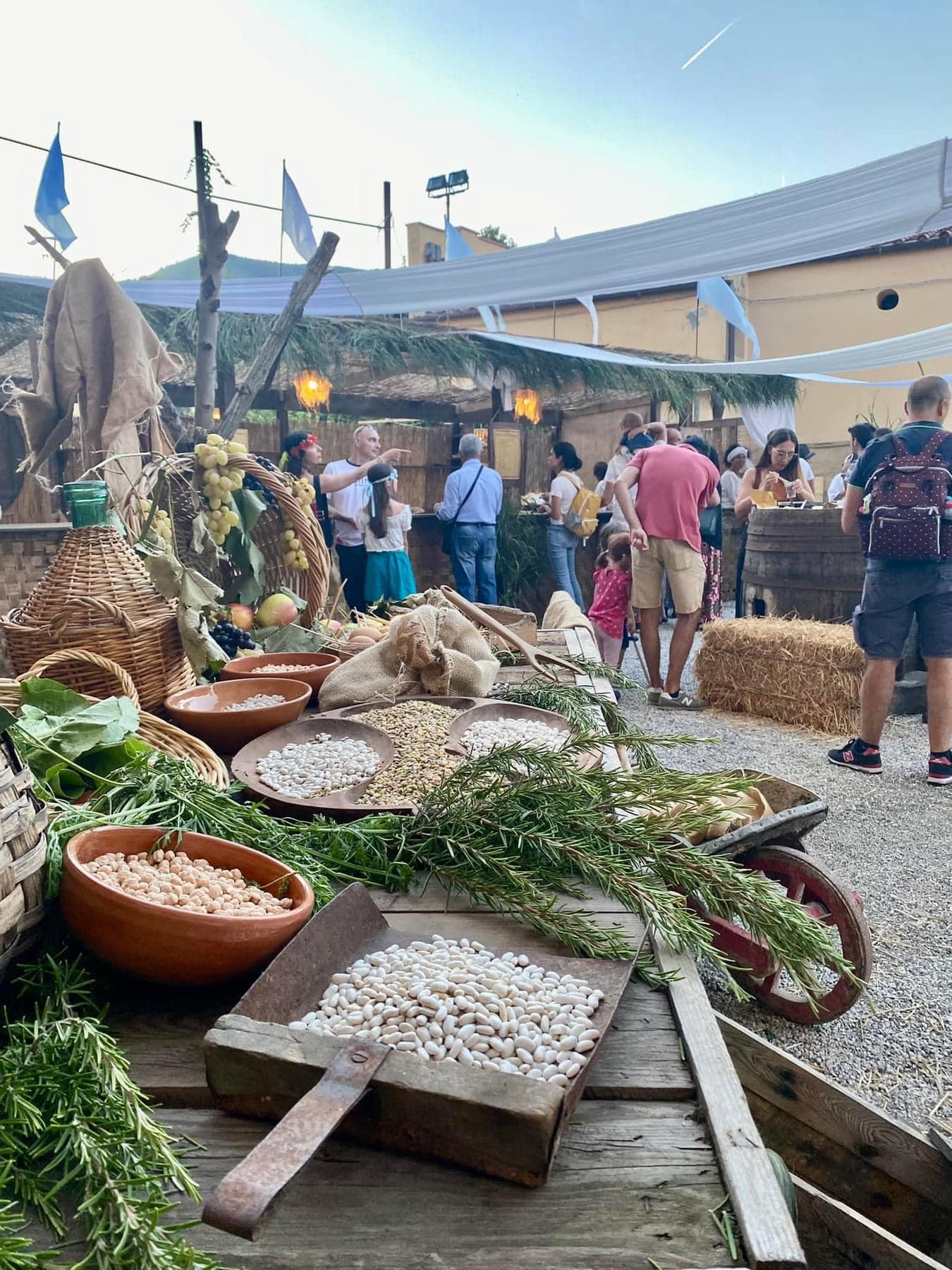 La Festa Medievale accoglie non solo migliaia di turisti, ma ogni anno, impegna nelle taverne, i punti di cambio forzoso della moneta, gli ingressi e i vicoli del borgo, centinaia di cittadini e volontari, tutti "al pezzo" per l'evento più importante della stagione.
