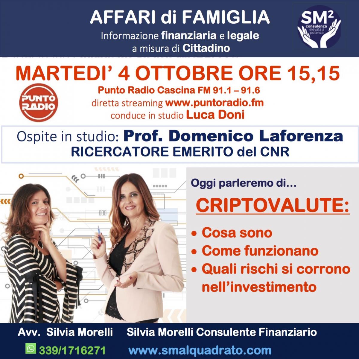 Martedì 4 ottobre, nella prima puntata stagionale di Affari di Famiglia, affronteremo un argomento di massima attualità: le criptovalute.