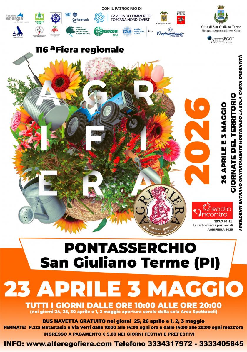 Partono, quindi, gli undici giorni di eventi, incontri e spettacoli che ruoteranno attorno al mondo dell’agricoltura, del florovivaismo, dell’artigianato, della vita rurale, della zootecnia, della tutela dell’ambiente e molto altro. Il programma è disponibile sul sito di AlterEgo Fiere e su quello del Comune di San Giuliano Terme, canali costantemente aggiornati anche con le informazioni pratiche per i visitatori.