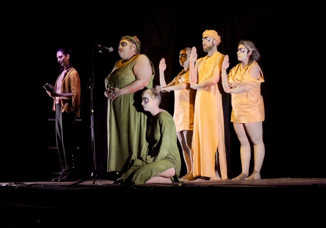 Sul palco Fabio Buonocore, Wilma, Paolo Olita, Claudia Perossini, Massimo Risi, Giorgia Fasce, Marco Fagioli, Pierluigi Foschi e Federica Cerizza che condurranno lo spettatore in un viaggio sulle orme di due popoli: gli Angololi, popolo che risolve ogni controversia in un compromesso, e i Tondoli, popolo dall'animo sincero e connesso intimamente alla natura, che li conduce all'Approdo delle Salvezze. Qui, accolti da due strane e ambigue figure, saranno condotti verso una soluzione del loro viaggio tanto inaspettata quanto grottesca. Quali intenzioni si celano dietro la loro ospitalità? Quali speranze alimentano il peregrinare dei due popoli?