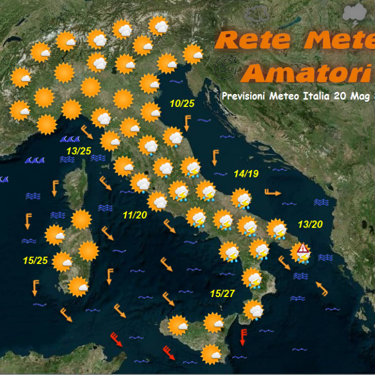 Il meteo di giovedì 20 luglio