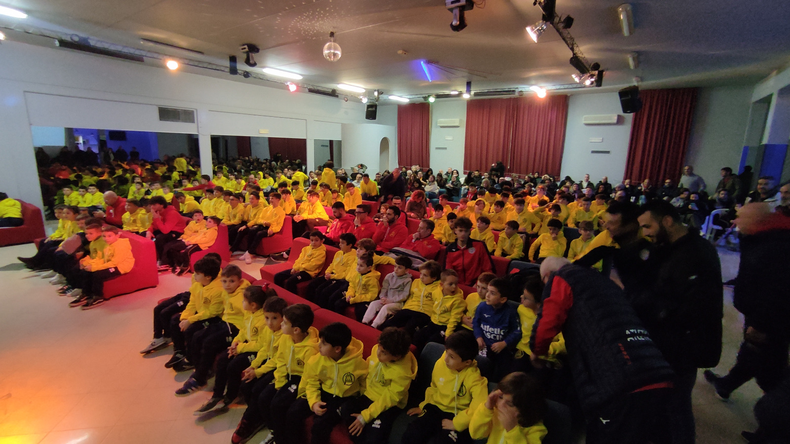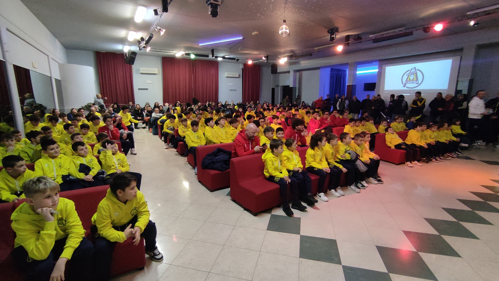 La presenza è stata particolarmente significativa: le diverse categorie si sono presentate al completo, riempiendo la sala con i colori sociali. Dalle felpe gialle degli atleti a quelle rosse degli allenatori, fino alle divise azzurre della squadra Over e ai colori bianco-verdi della dirigenza.