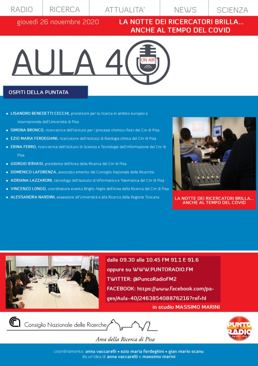 Aula 40 live con il Cnr di Pisa. La Notte dei Ricercatori brilla… anche al tempo del Covid ** RIVEDI LA PUNTATA **