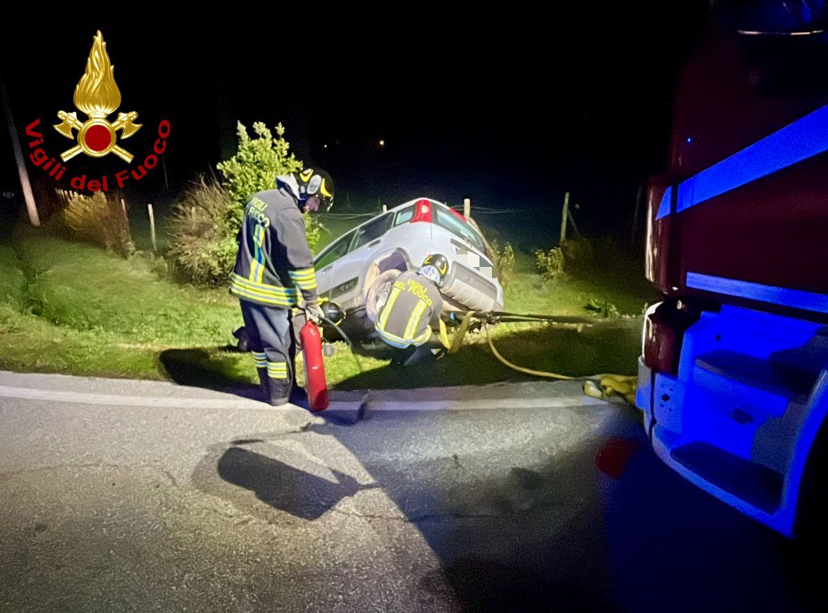 Auto fuori strada, intervento dei Vigili del Fuoco