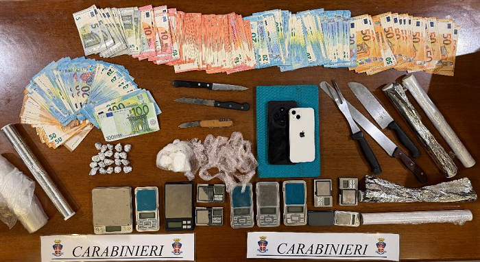 Nel corso dell'attività sono stati rinvenuti e sottoposti a sequestro 37 grammi di cocaina (contenuti in un unico involucro), 27,5 grammi di hashish, già suddivisi in dosi pronte per la vendita, 7.000 euro in contanti, ritenuti provento dell'attività illecita, bilancini di precisione e materiale vario per il confezionamento dello stupefacente.