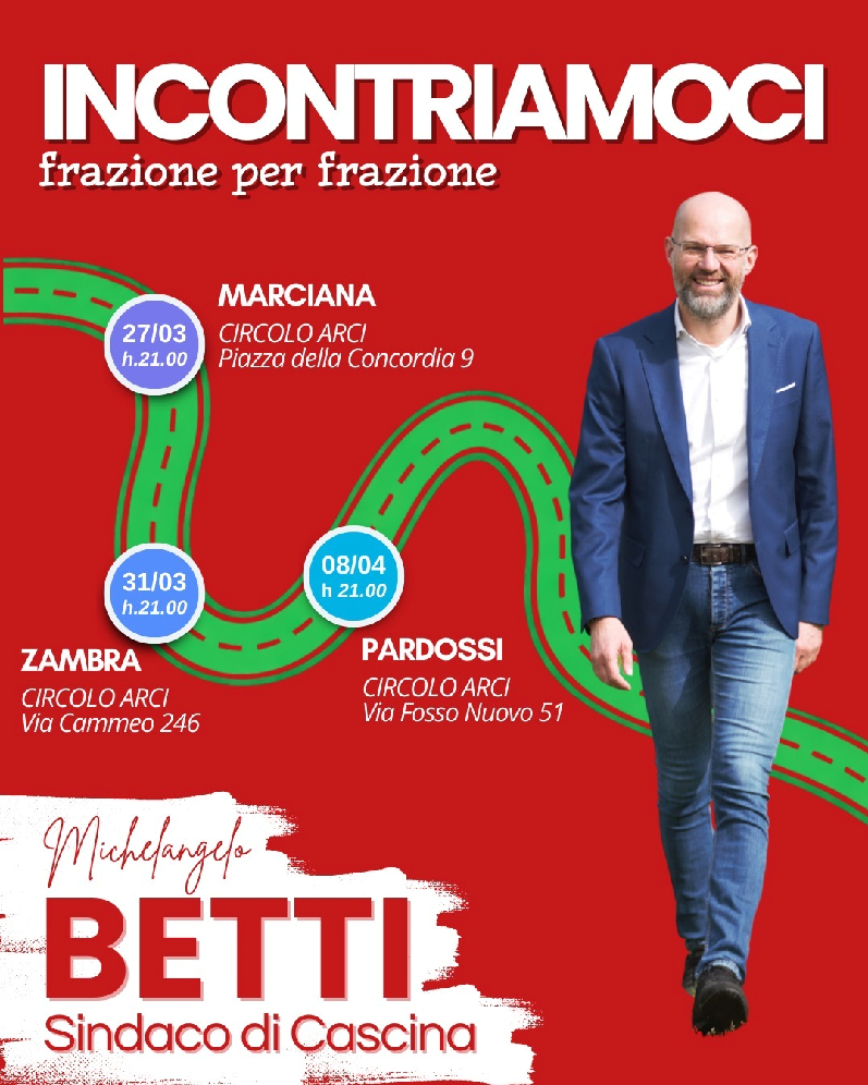 Due mesi di incontri nelle frazioni del territorio di Cascina per ascoltare le istanze dei cittadini, inizia la campagna elettorale per il Sindaco Michelangelo Betti
