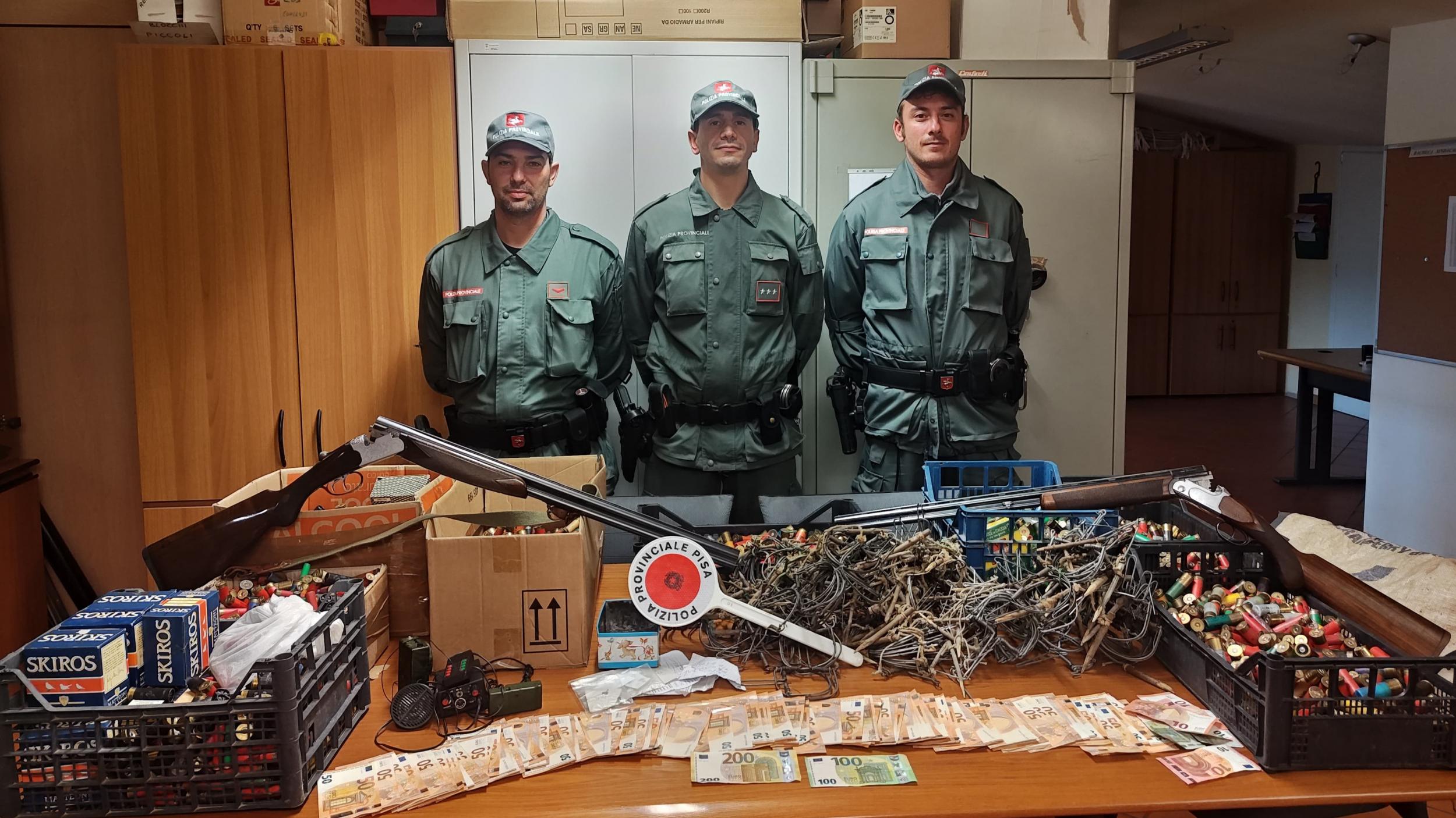 L’operazione, condotta dopo quasi un anno di indagini, ha portato al sequestro di 5.800 euro in contanti, oltre a numerose reti, circa 150 tagliole, 4.000 cartucce non denunciate e due fucili da caccia.