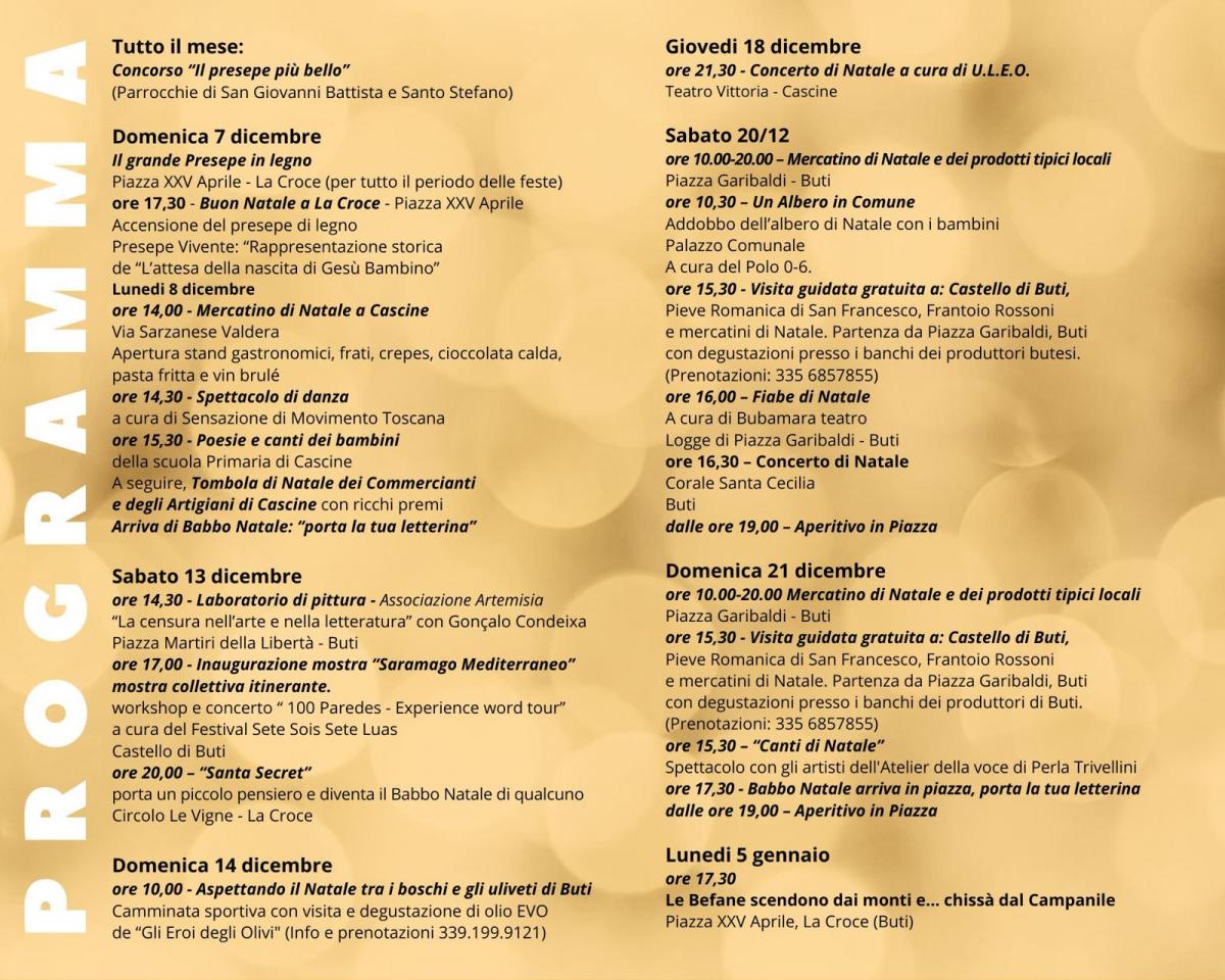 Buti, passata la due giorni di “Olio in Castello” e in attesa del Palio delle Contrade, mantiene viva dunque anche per il Natale la propria tradizione di paese aperto ed accogliente.
