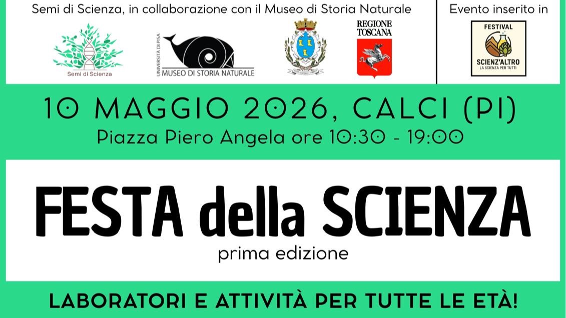 È la prima edizione della Festa della Scienza, in programma domenica 10 maggio a Calci, con attività, laboratori e momenti di approfondimento distribuiti nell’arco dell’intera giornata.