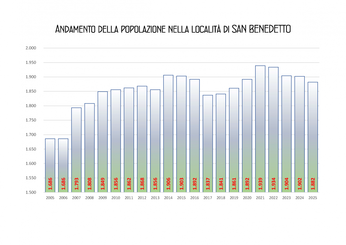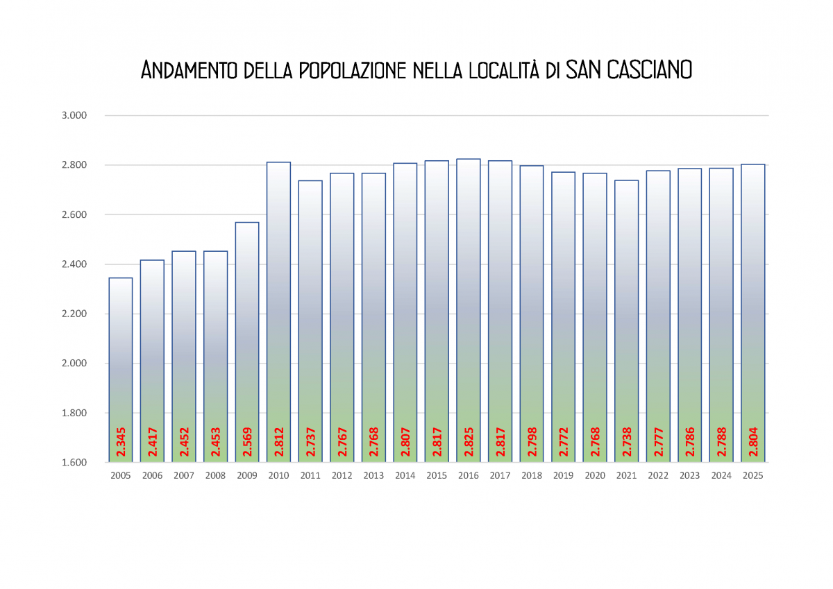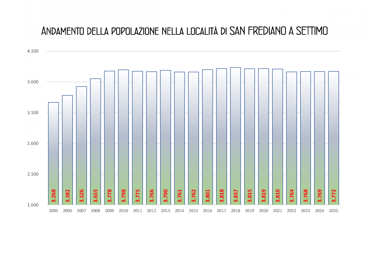 Qui sotto possiamo vedere invece l’andamento storico della popolazione nelle località di Ripoli, San Benedetto, San Casciano e San Frediano a Settimo.