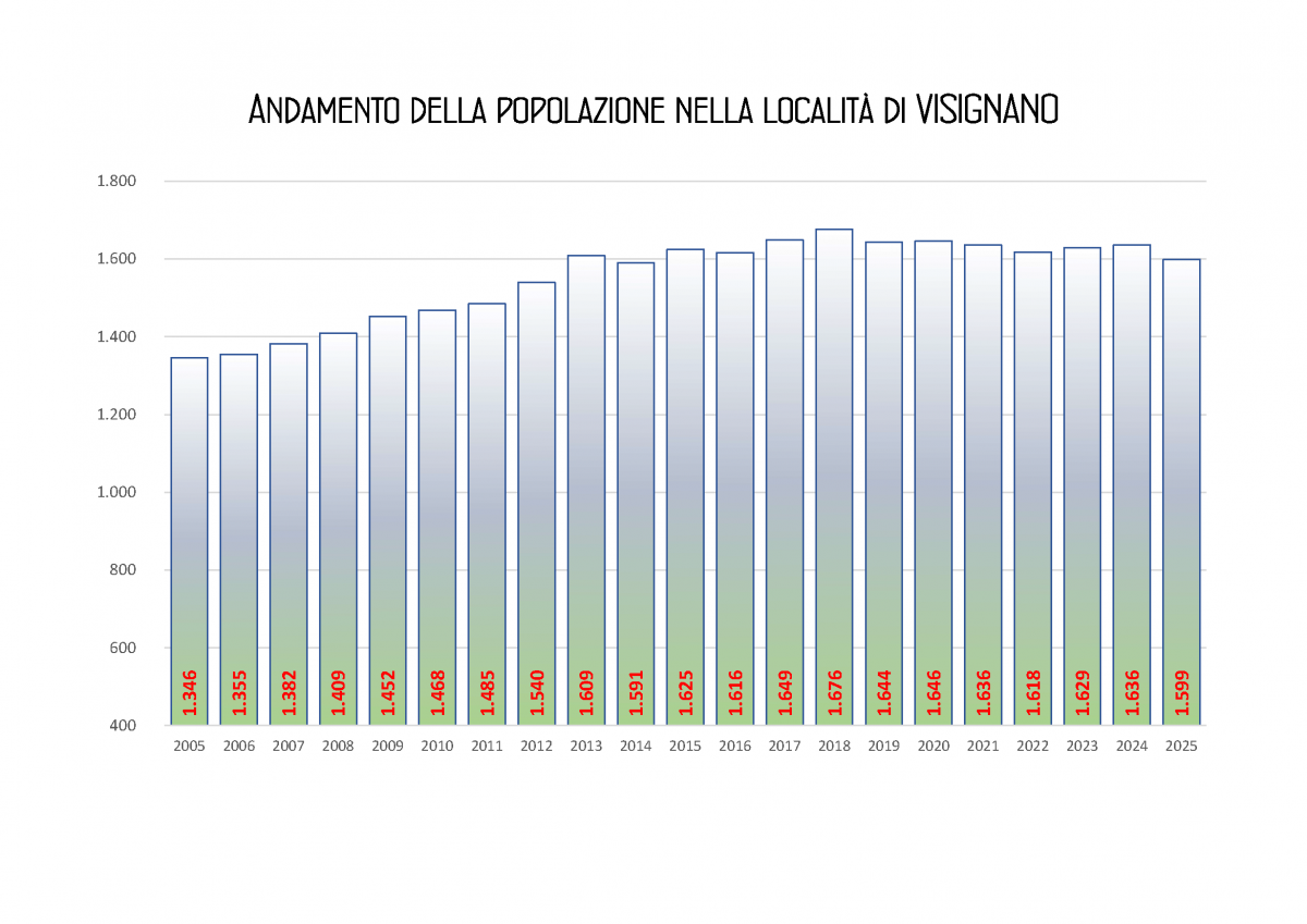 Qui sotto possiamo vedere l’andamento storico della popolazione nelle ultime località: Santo Stefano a Macerata, Titignano, Vicarello, Visignano e Zambra.