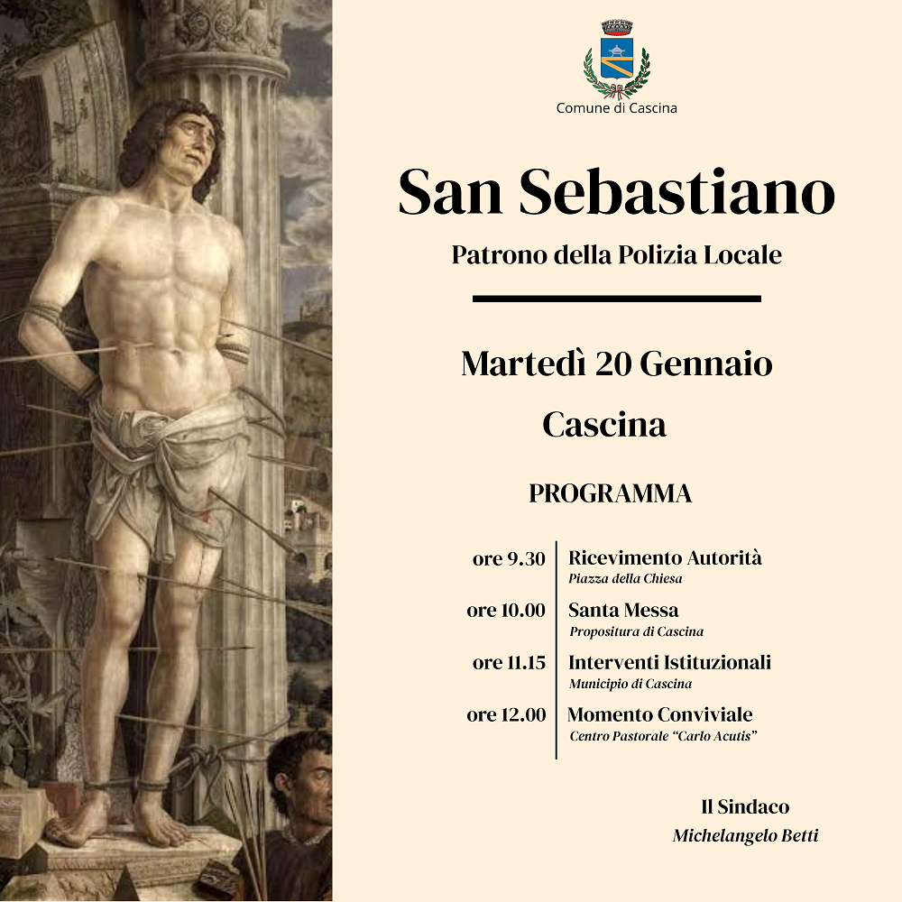 Sarà Cascina ad ospitare quest’anno la festa provinciale delle Polizie Locali, in programma martedì 20 gennaio nel giorno dedicato a San Sebastiano, patrono della Polizia Municipale