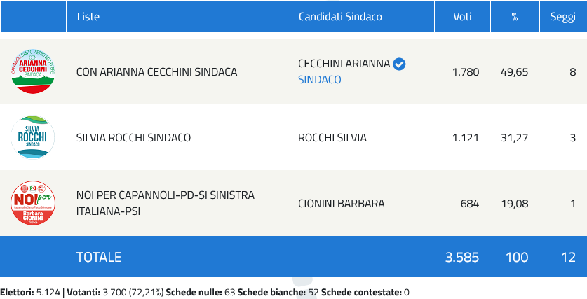 A Capannoli, va ricordato, la spaccatura interna al Partito Democratico aveva portato prima all'esclusione di Arianna Cecchini dalla possibile candidatura per il suo terzo mandato da sindaca, poi, ad una sonora sconfitta elettorale della coalizione di centrosinistra.
