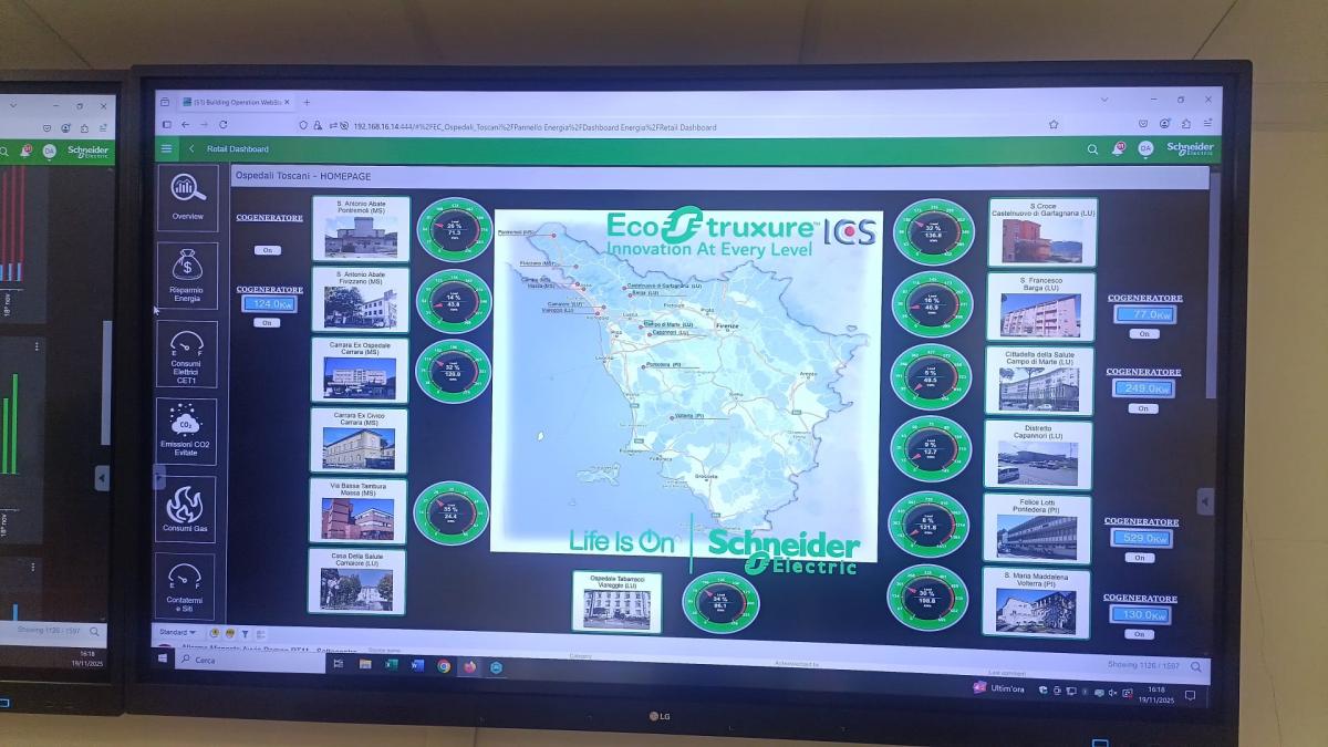 In questi 13 presidi è stato installato un sistema di supervisione (Building management system – BMS) che gestisce e monitora le apparecchiature meccaniche ed elettriche degli edifici e convoglia i dati nella moderna control room realizzata all’interno ospedale Versilia.