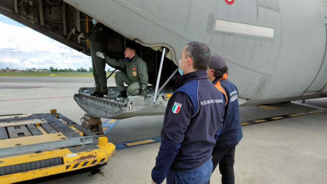 12 tonnellate di attrezzature mediche. La missione italiana rientra nell'ambito del Meccanismo europeo di Protezione Civile